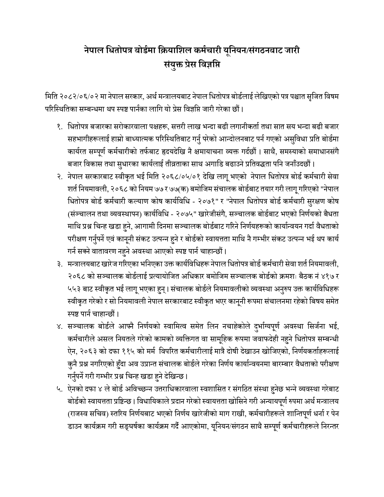 कर्मचारीहरुले आज जारी गरेका विज्ञप्ति यस्तो छः