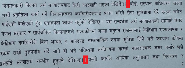 अख्तियारले मासिक रुपमा लिइने सेवासुविधामा समेत प्रश्न उठाउँदै प्रतिवेदन तयार गरेको छ । "बोर्ड, संस्थान, प्राधिकरण जस्ता उस्तै प्रकृतिका कार्य गर्ने निकायहरुका कर्मचारीहरुलाई प्रदान गरिने सेवा सुविधामा धेरै फरक समेत पाइएको देखिएको हुँदा एकरुपता कायम गर्नुपर्ने देखिन्छ ।" अख्तियारले ८ पृष्ठ लामो आफ्नो प्रतिवेदनमा भनेको छ-"यस सन्दर्भमा अर्थमन्त्रालयको सहमतिबेगर नेपाल सरकार र सार्वजनिक निकायहरुले राज्यकोषमा जम्मा गर्नुपर्ने राजश्वलाई केही भाग राज्यकोषमा र केही भाग कर्मचारीले बिनाआधार र मापदण्ड अस्वभाविक रुपमा सुविधा लिने गरी कल्याणकोषमा रकम राखी दुरुपयोग गर्दै जाने हो भने  भविष्यमा अर्थतन्त्रमा कस्तो नकारात्मक असर पर्ला ? भन्ने प्रश्नप्रति पनि मन्त्रालय गम्भीर हुनुपर्ने देखिन्छ ।"