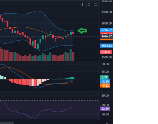काठमाण्डौ । अघिल्लो दिन बढेको बजारले आज पनि निरन्तरता पाएको छ । आज पनि बजारमा दिनभर बढेर कारोबार भएको थियो । आज बजार बढ्दा कारोबार पनि बढेको छ । प्राविधिक रुपमा आजको बजारलाई मुभिङ एभरेजबाट नियाल्दा पछिल्लोपटक बजारले २०० दिनको मूभिङ एभरेजमा सपोर्ट लिएर फर्केको छ । बोलिङ्गर ब्याण्डबाट नियाल्दा बजार तल्लो ब्याण्डबाट फर्केर मध्य ब्याण्डतर्फ आकर्षित भएको छ ।