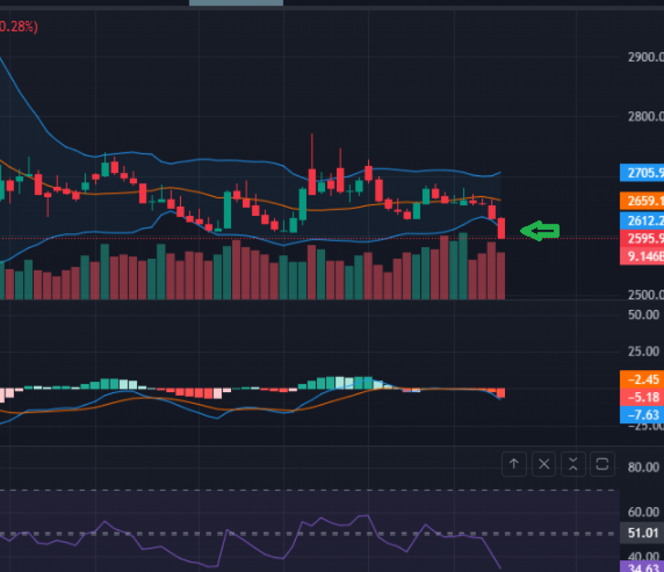 लामो समय मध्य ब्याण्डमा साइडवेज चलेको बजारले आजबाट भने प्रष्ट रुपमा दिशा तय गरेको देखिन्छ । म्याक्डीमा पनि बियरिस क्रसओभर बनेको छ । हिस्टोग्राम नेगेटिभ र लामा–लामा हुँदै गएका छन् । आरएसआई ३५ को तहमा पुगेको छ । मनी फ्लो इन्डेक्स पनि २४ को तहमा आएको देखिन्छ । आज बजार घट्दा कारोबार पनि घटेको छ । यद्यपी कारोबार २० दिनको औषत कारोबारबराबर नै देखिन्छ । आज २६ सय विन्दुबाट तल खसेको बजारले नजिकको सपोर्ट २५८० विन्दु आसपासमा लिन सक्छ । यदि त्यहाँबाट पनि तल खसेमा भने बजारले केही थप अंक गुमाउन सक्छ ।