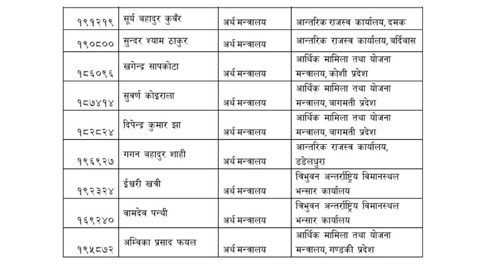 अर्थ मन्त्रालयद्वारा एकसाथ ३० उपसचिवको सामूहिक स्थानान्तरण