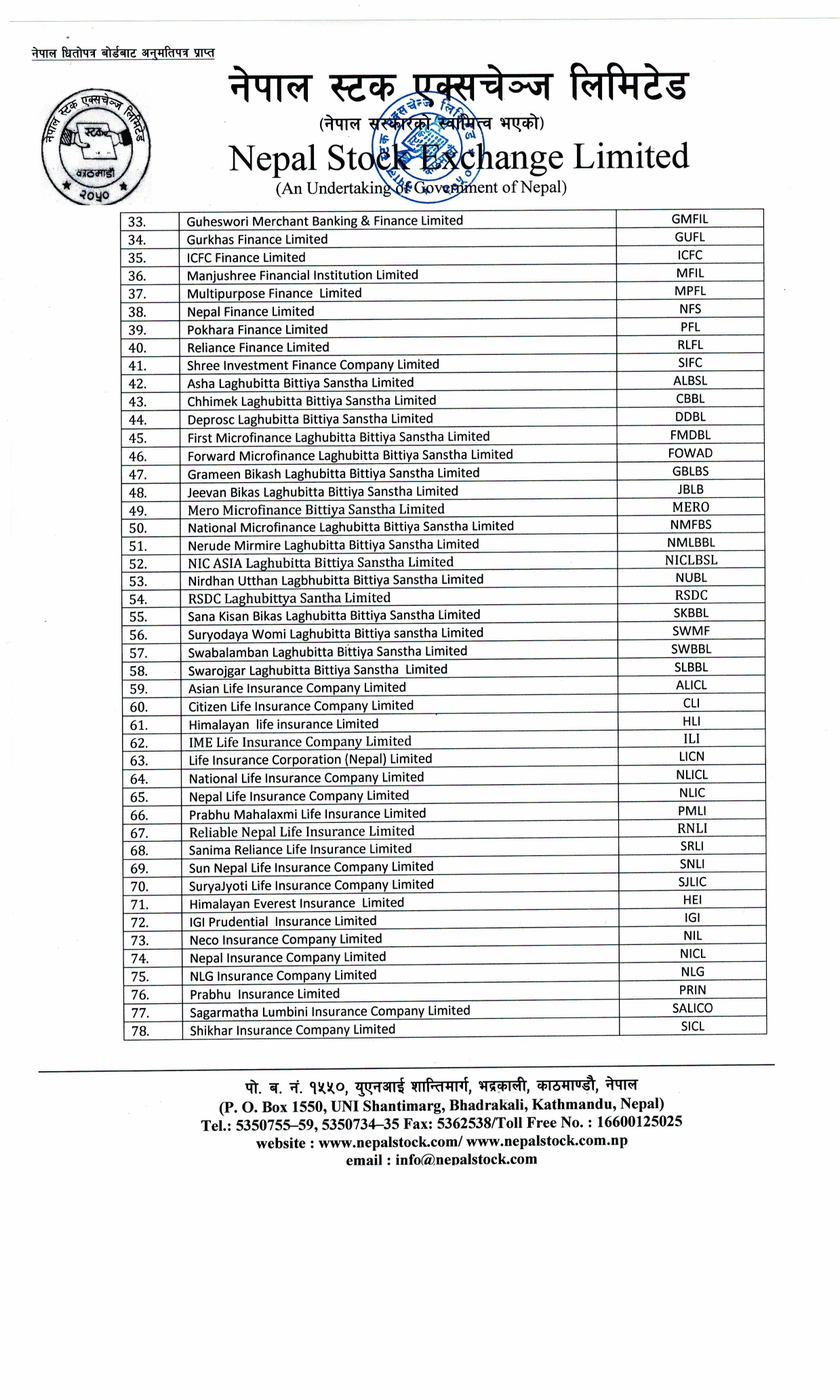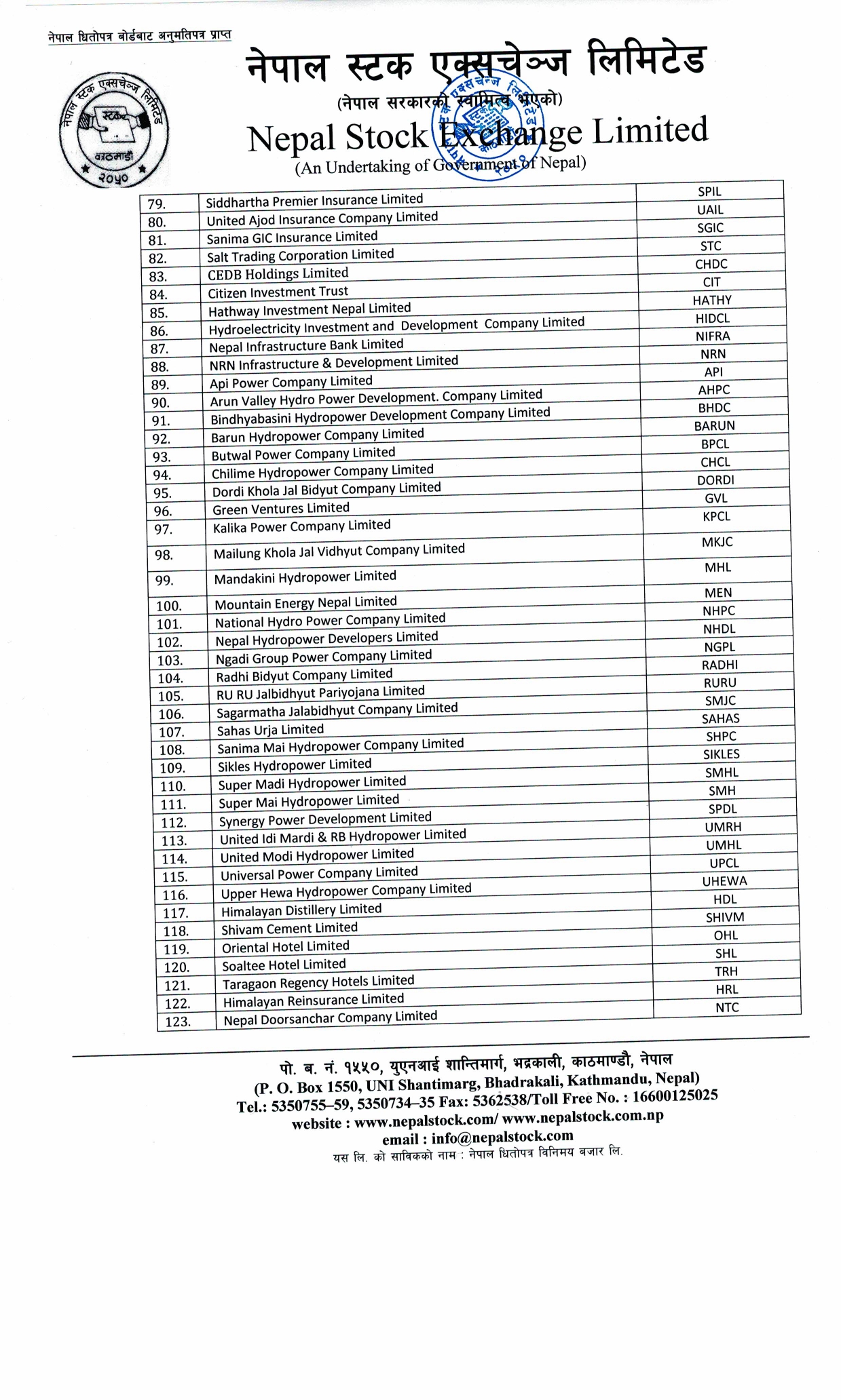 साल्ट ट्रेडिङ कर्पोरेसन, सिईडिबी होल्डिङ्स, नागरिक लगानीकोष, हाथ्वे इन्भेष्टमेन्ट, एचआईडिसीएल, निफ्रा, एनआरएन इन्फ्रास्टक्चर एण्ड डेभलपमेन्ट लिमीटेड जस्ता कम्पनी पनि सूचिमा परेका छन् ।