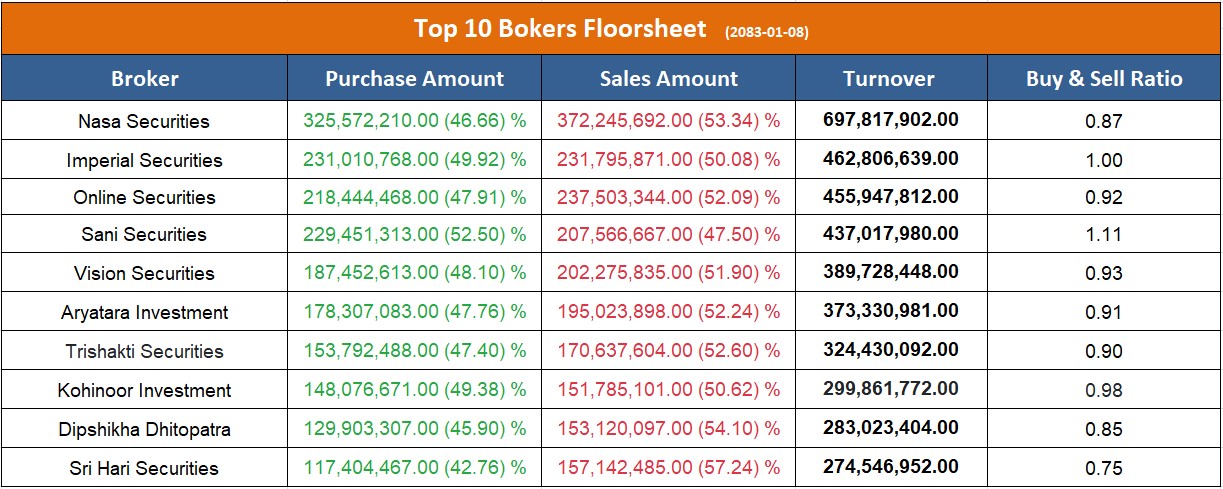 उच्च खरिद गर्ने ब्रोकरहरुमा इम्पेरियल सेक्युरिटिज र सनि सेक्युरिटिज रहेका छन् ।