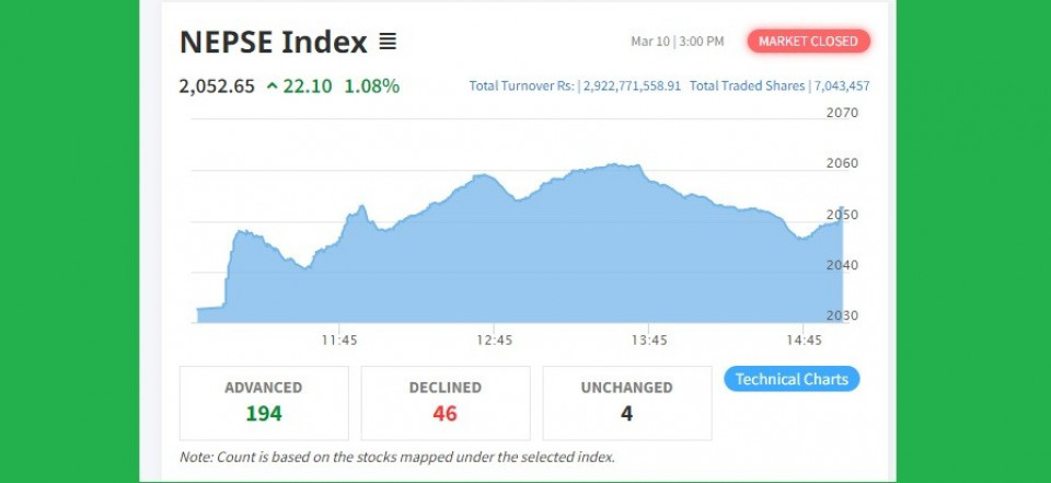 बजारमा दोहोरो अंकको बढोत्तरी,‘अर्थमन्त्रीको सकारात्मक अभिव्यक्तिका कारण हरियाली’