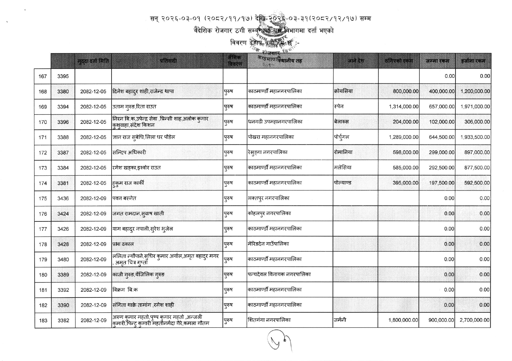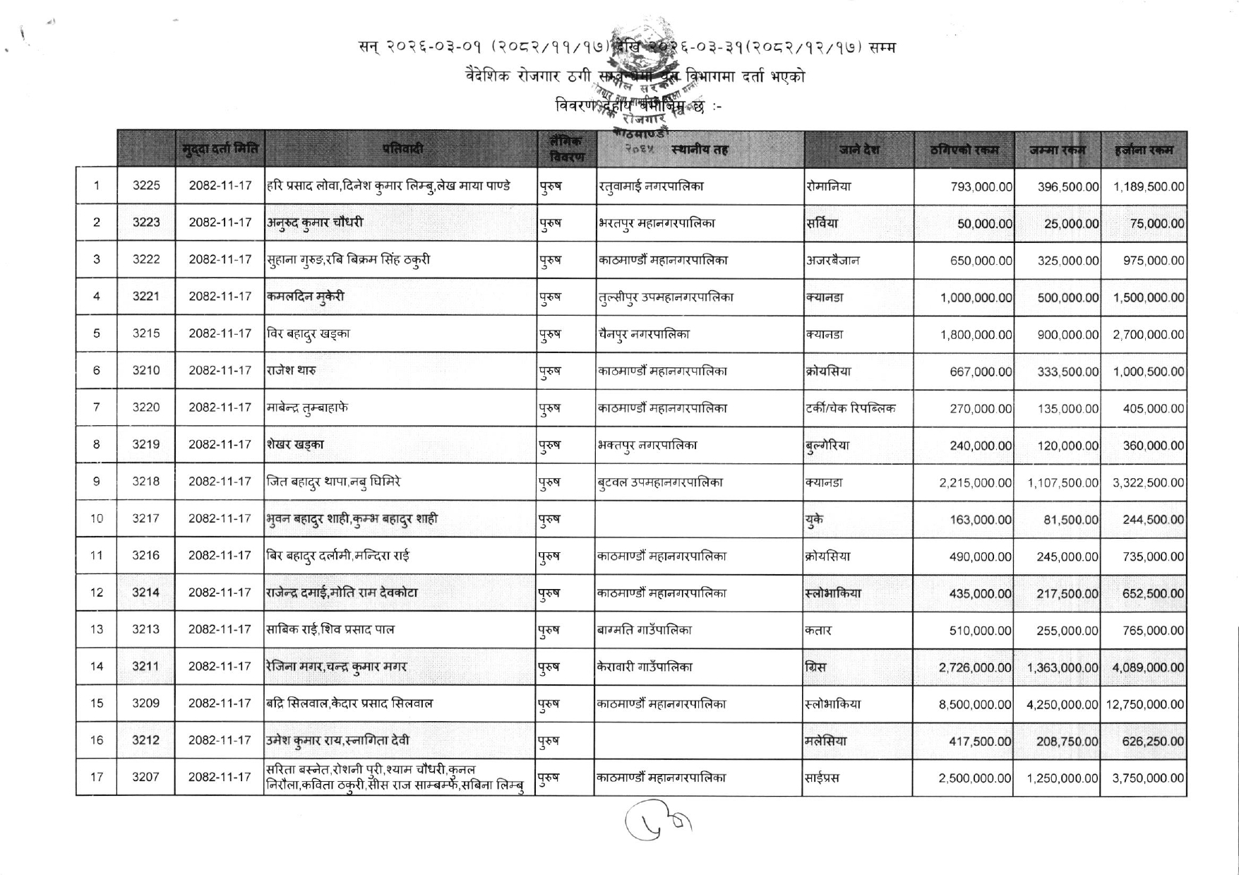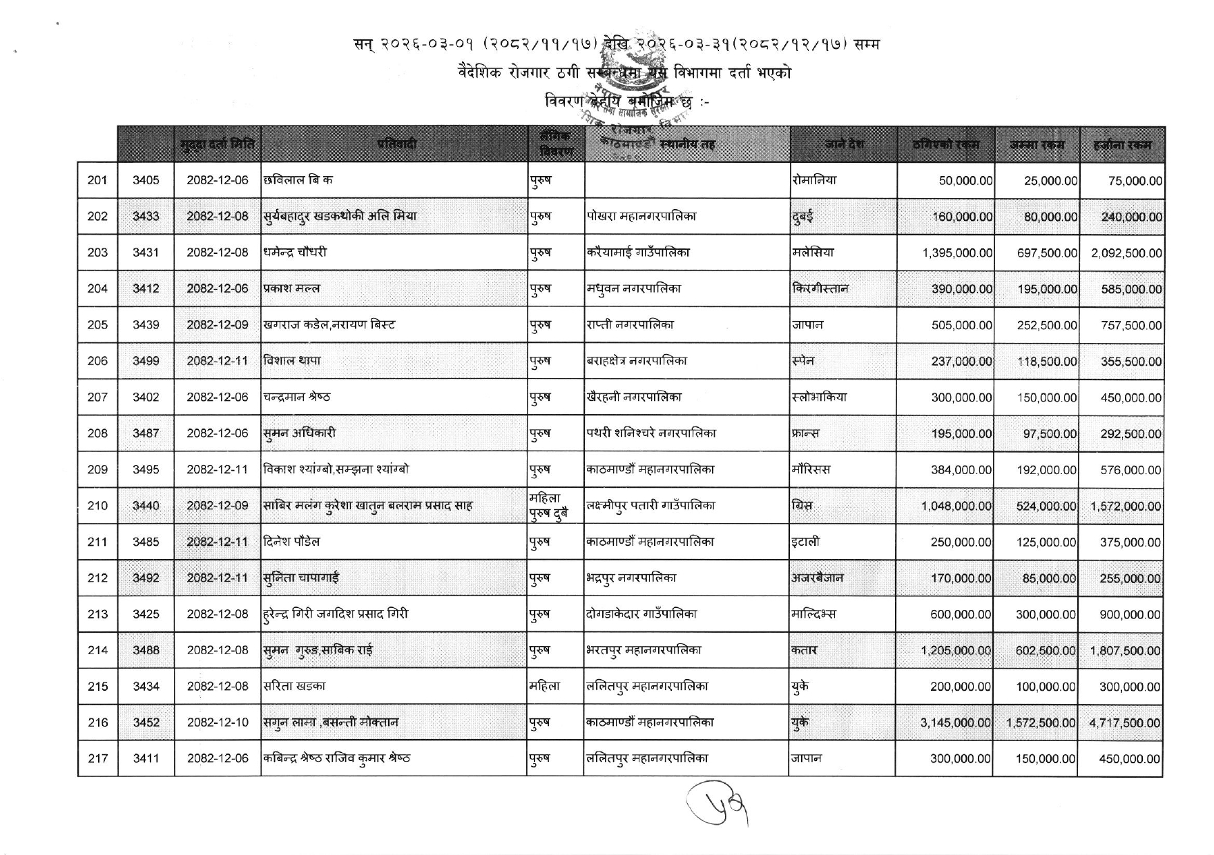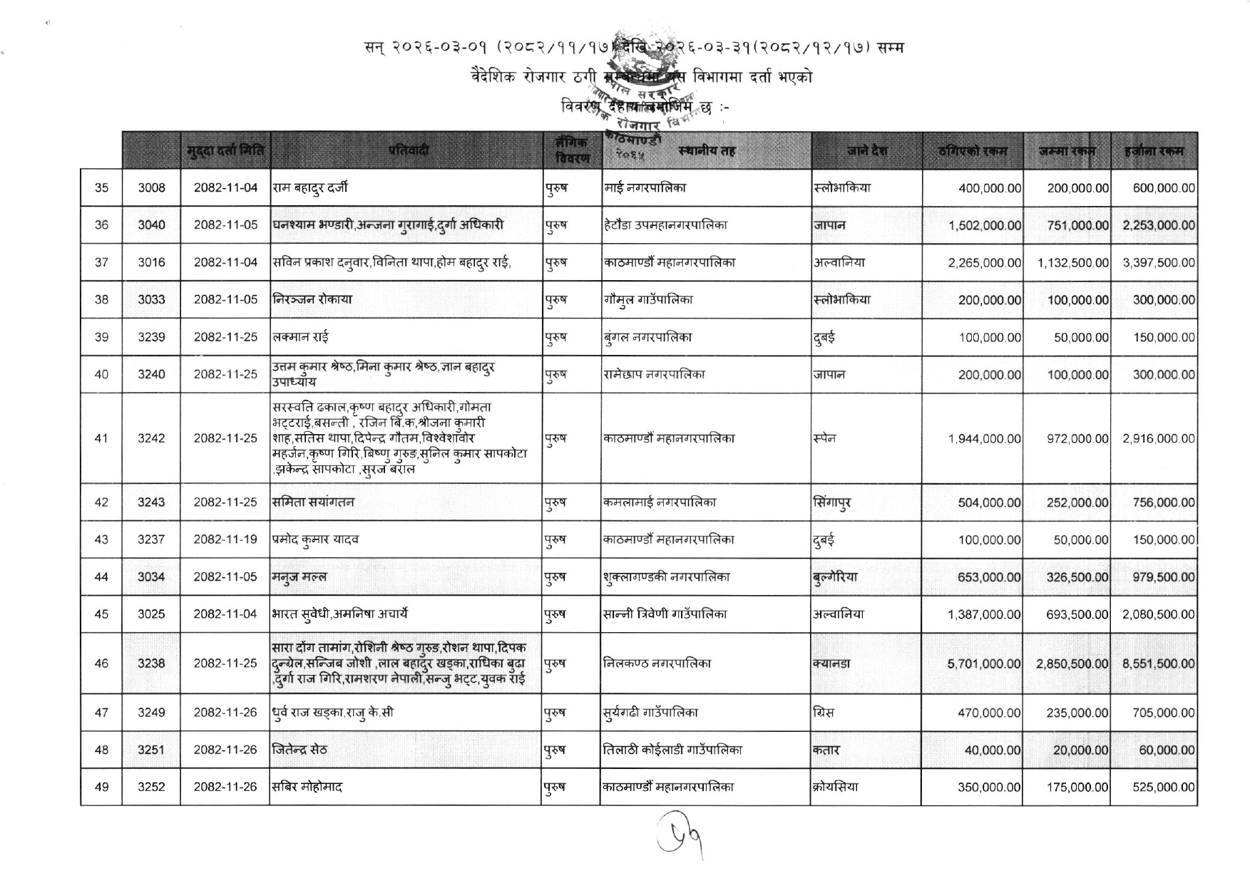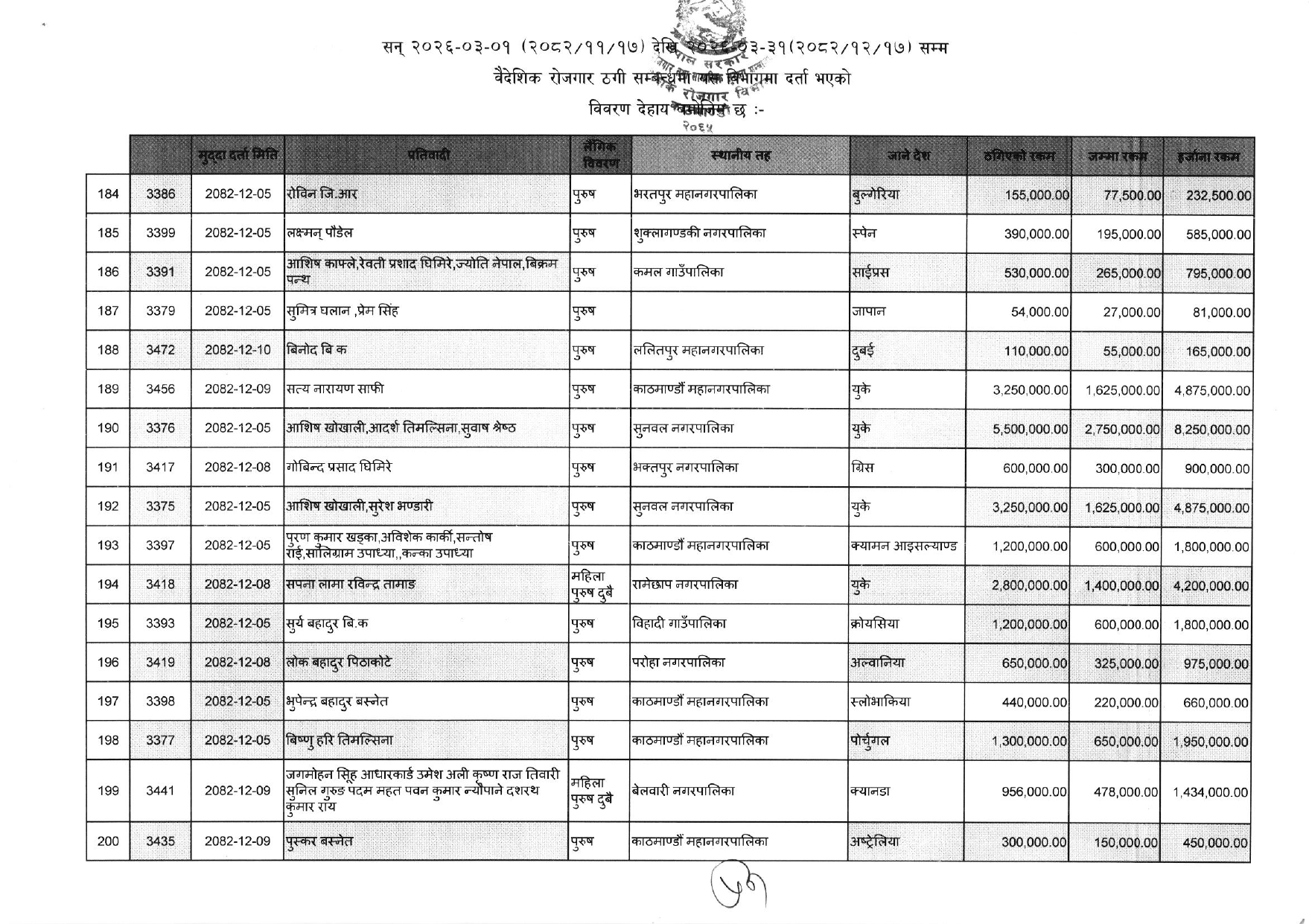 विभागले सार्वजनिक गरेको ठगीको आरोपसहित उजुरी गरिएकाहरुको सूचि यसप्रकार छ :