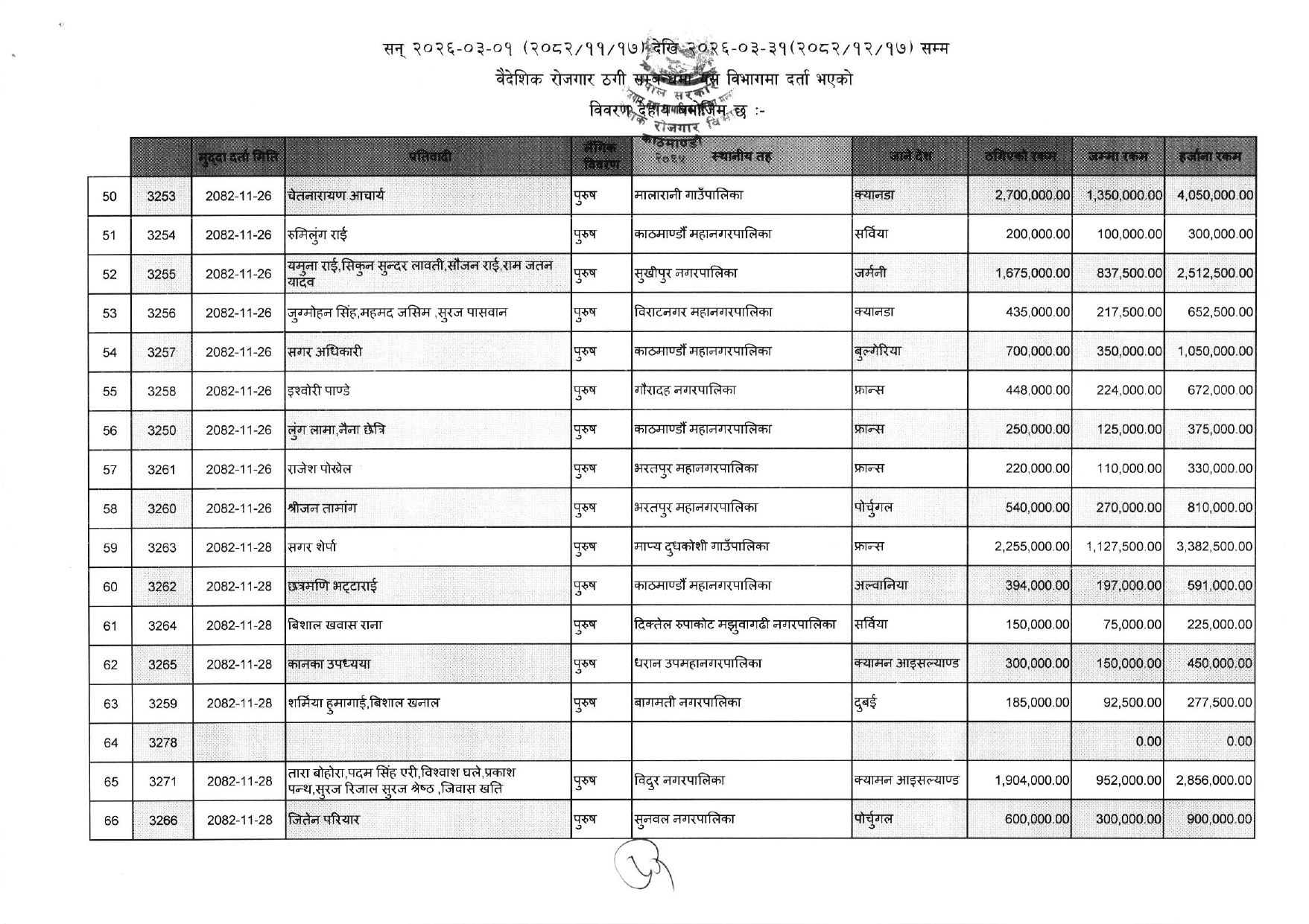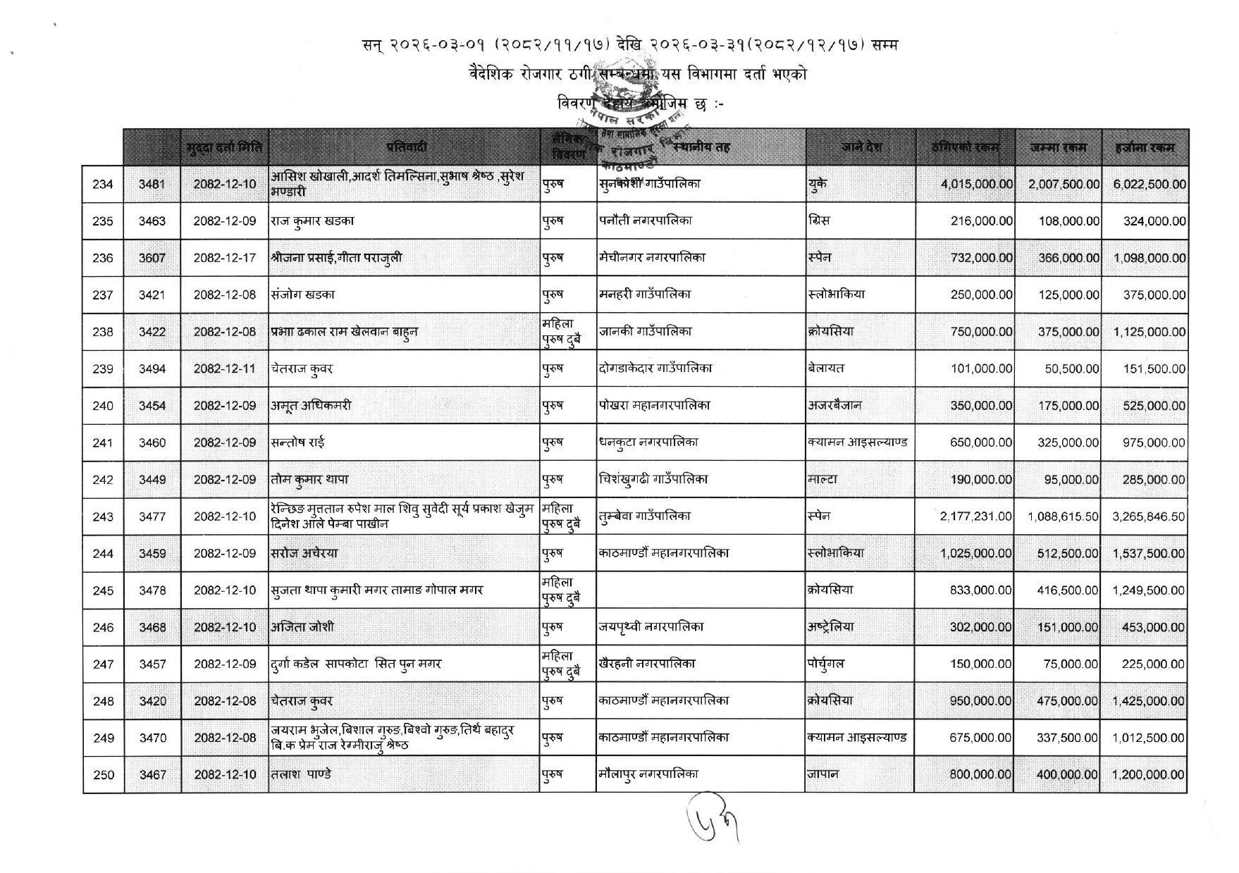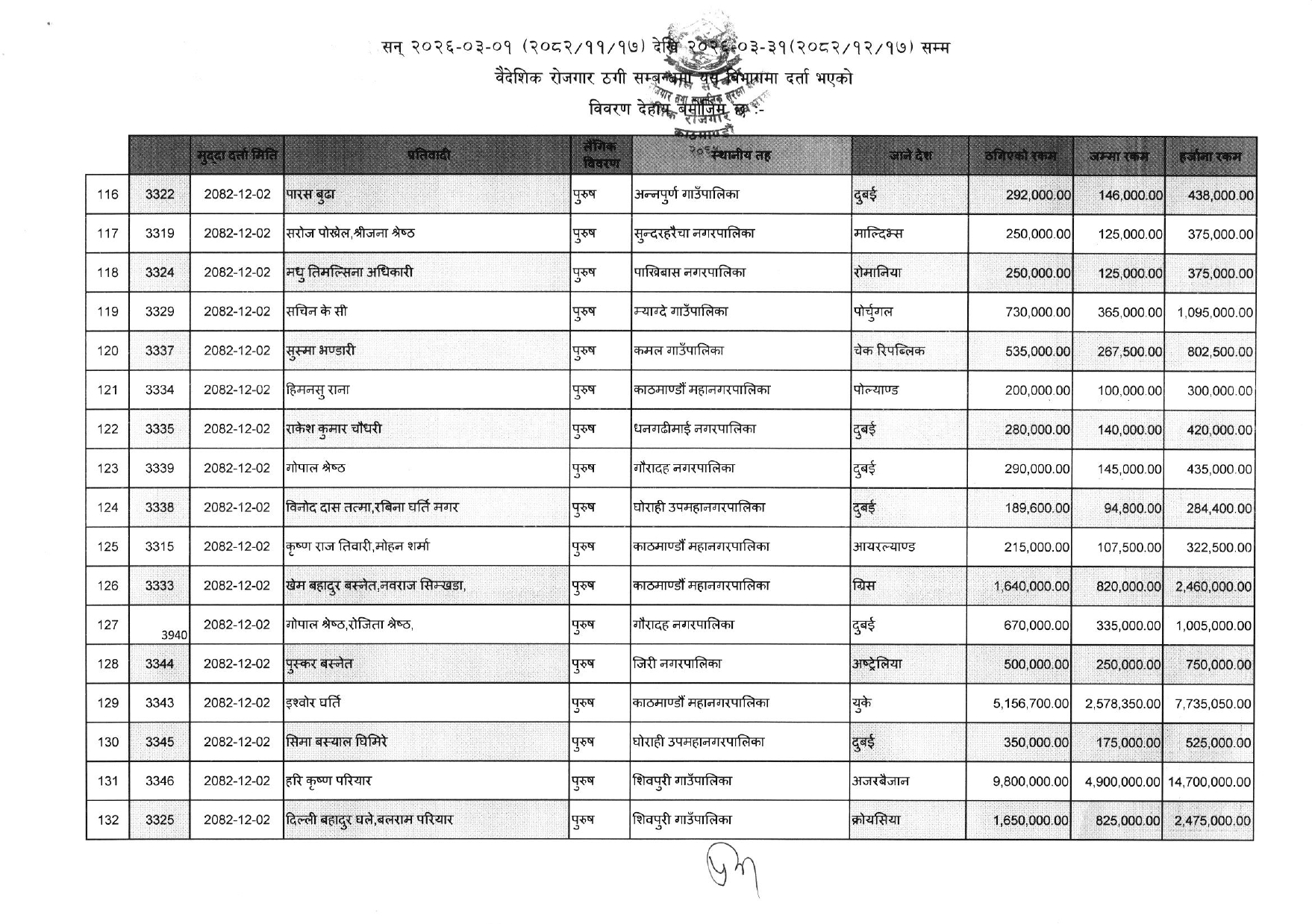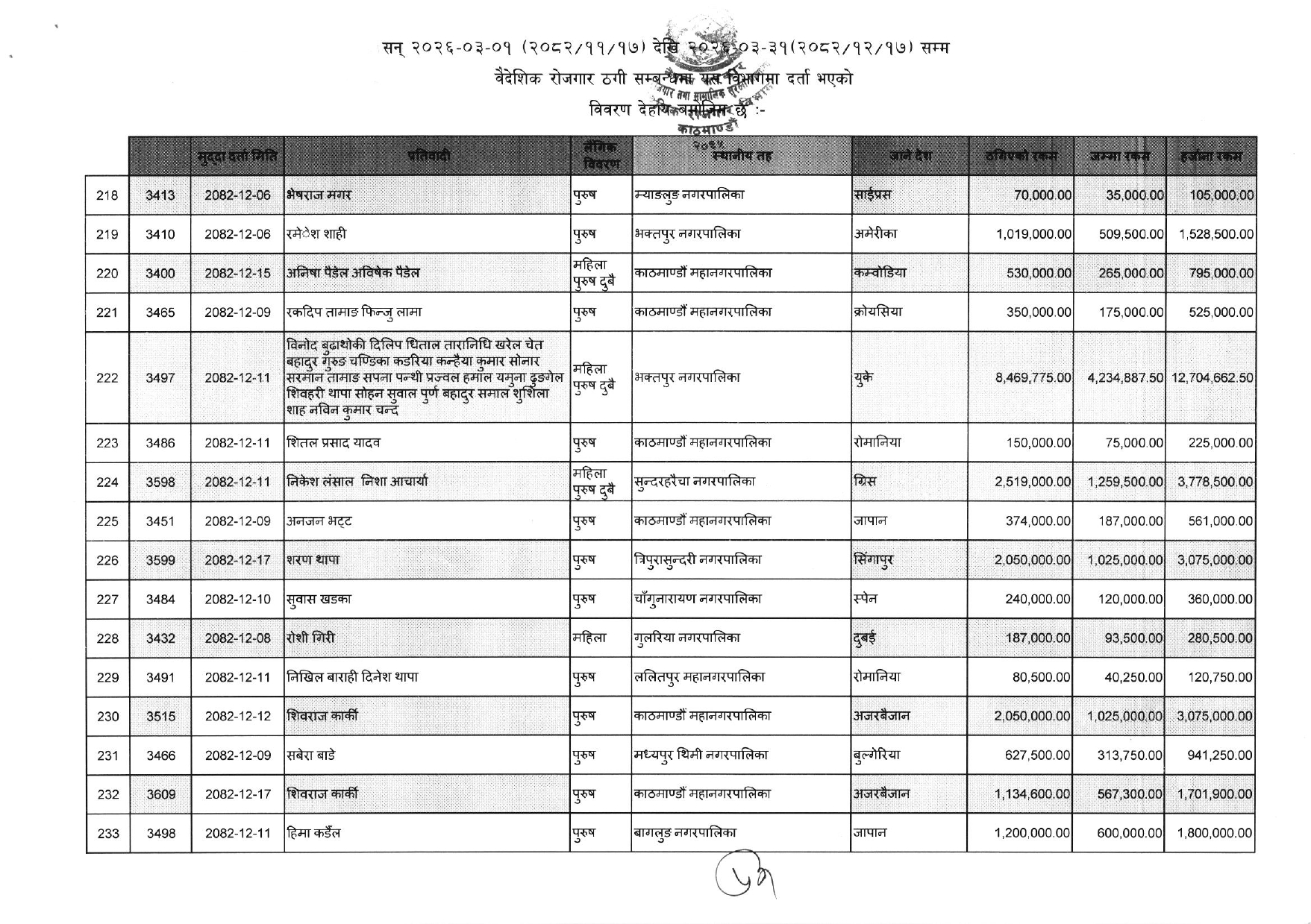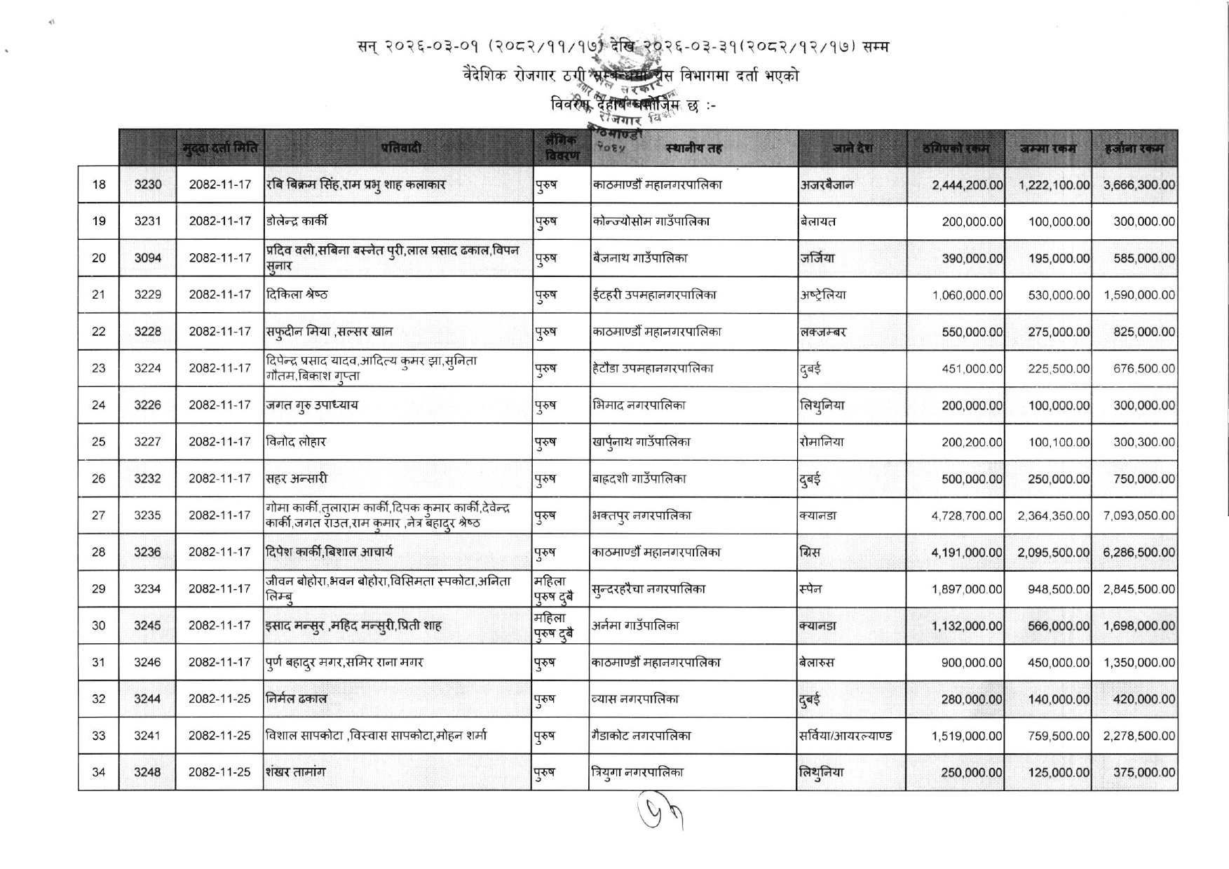 विभागले सार्वजनिक गरेको ठगीको आरोपसहित उजुरी गरिएकाहरुको सूचि यसप्रकार छ :
