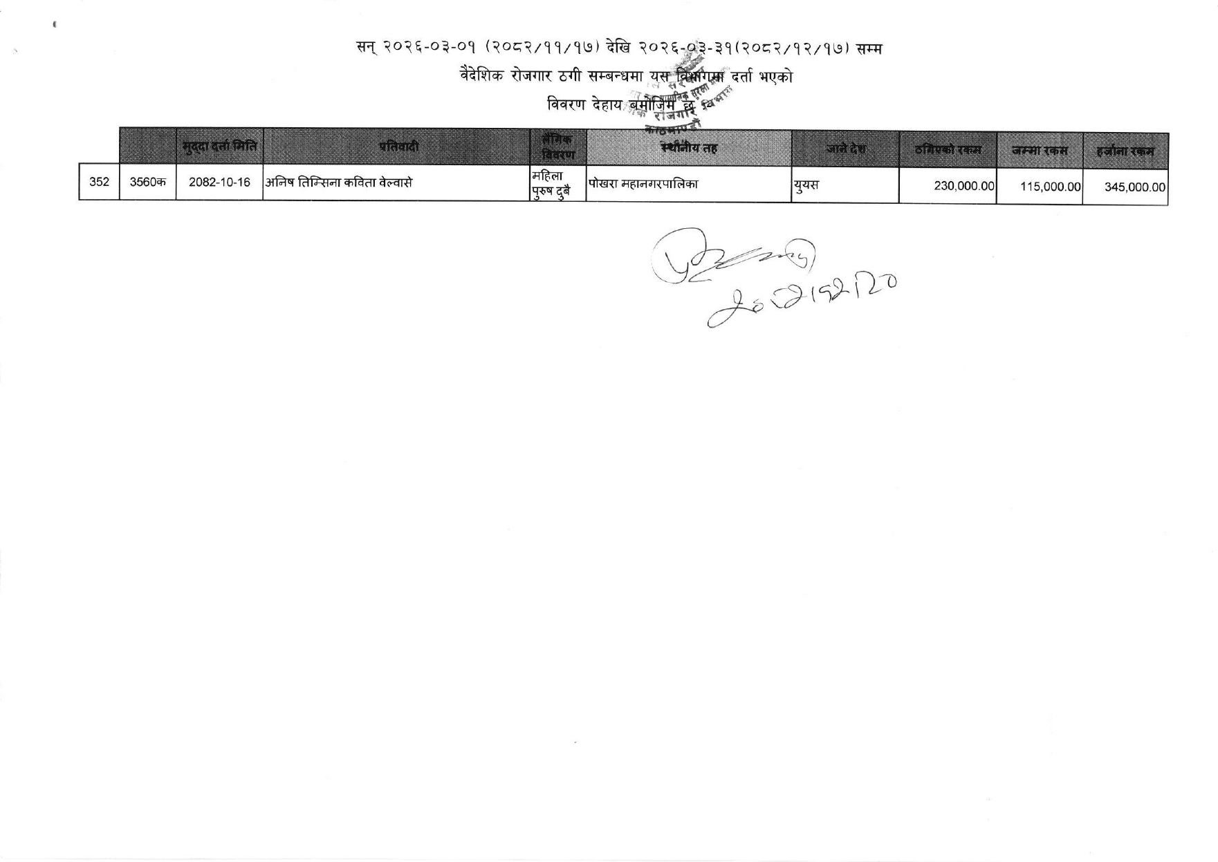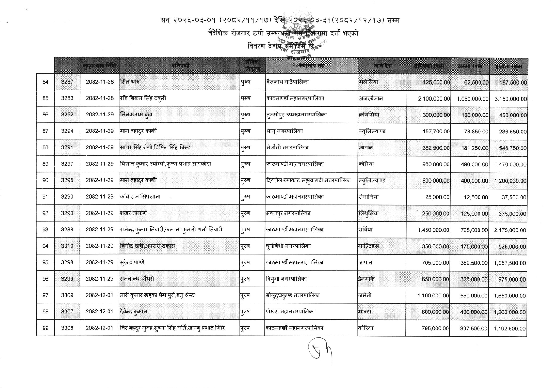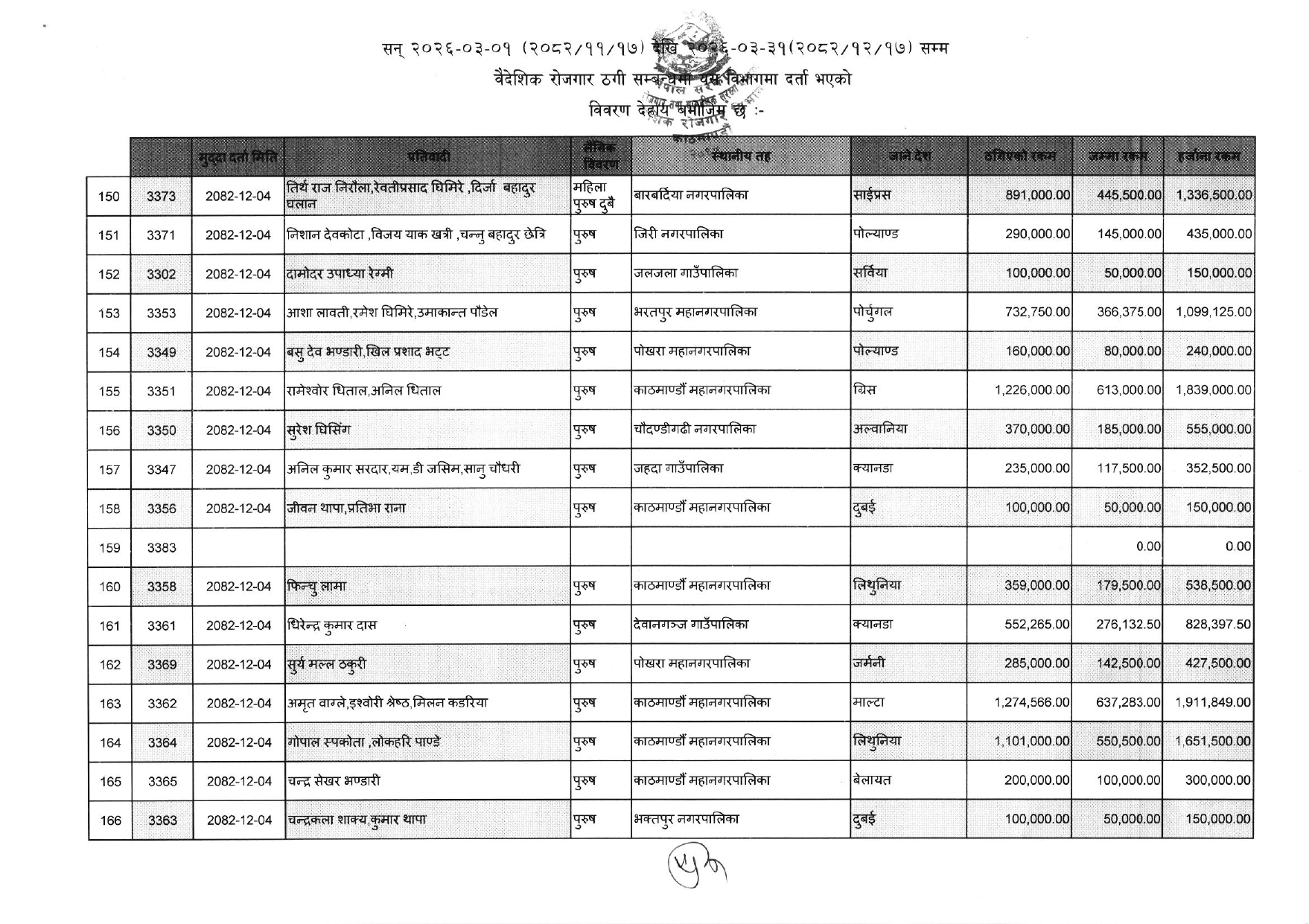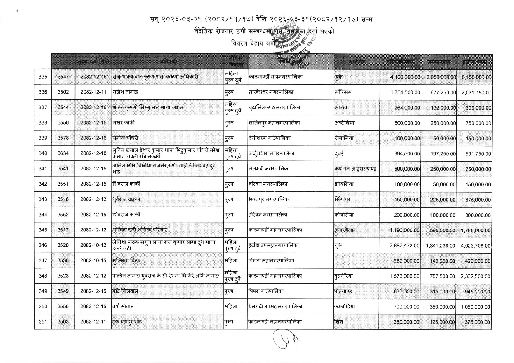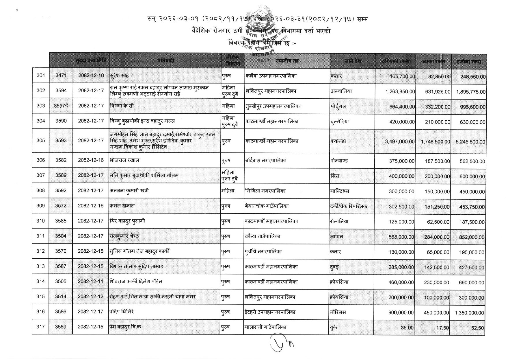 विभिन्न आकर्षक गन्तव्य-देश) लगिदिने भन्दै व्यक्तिगत रुपमा करोडौं ठगी गरेका ३५२ जनाको नाम विभागले एकैपटक सार्वजनिक गरिदिएसँगै वैदेशिक रोजगारको क्षेत्रमा हलचल मच्चिएको छ ।