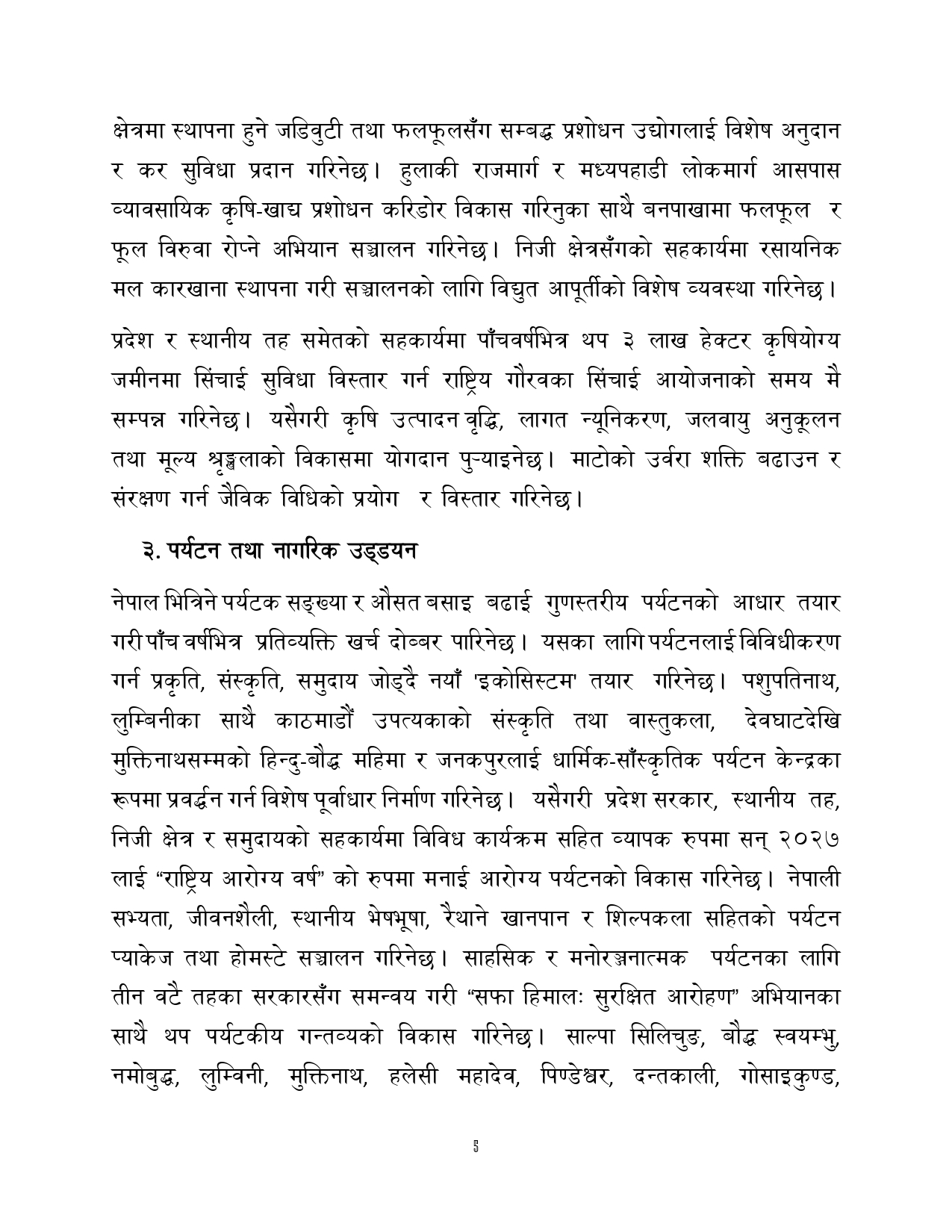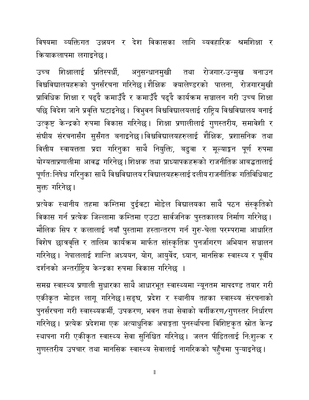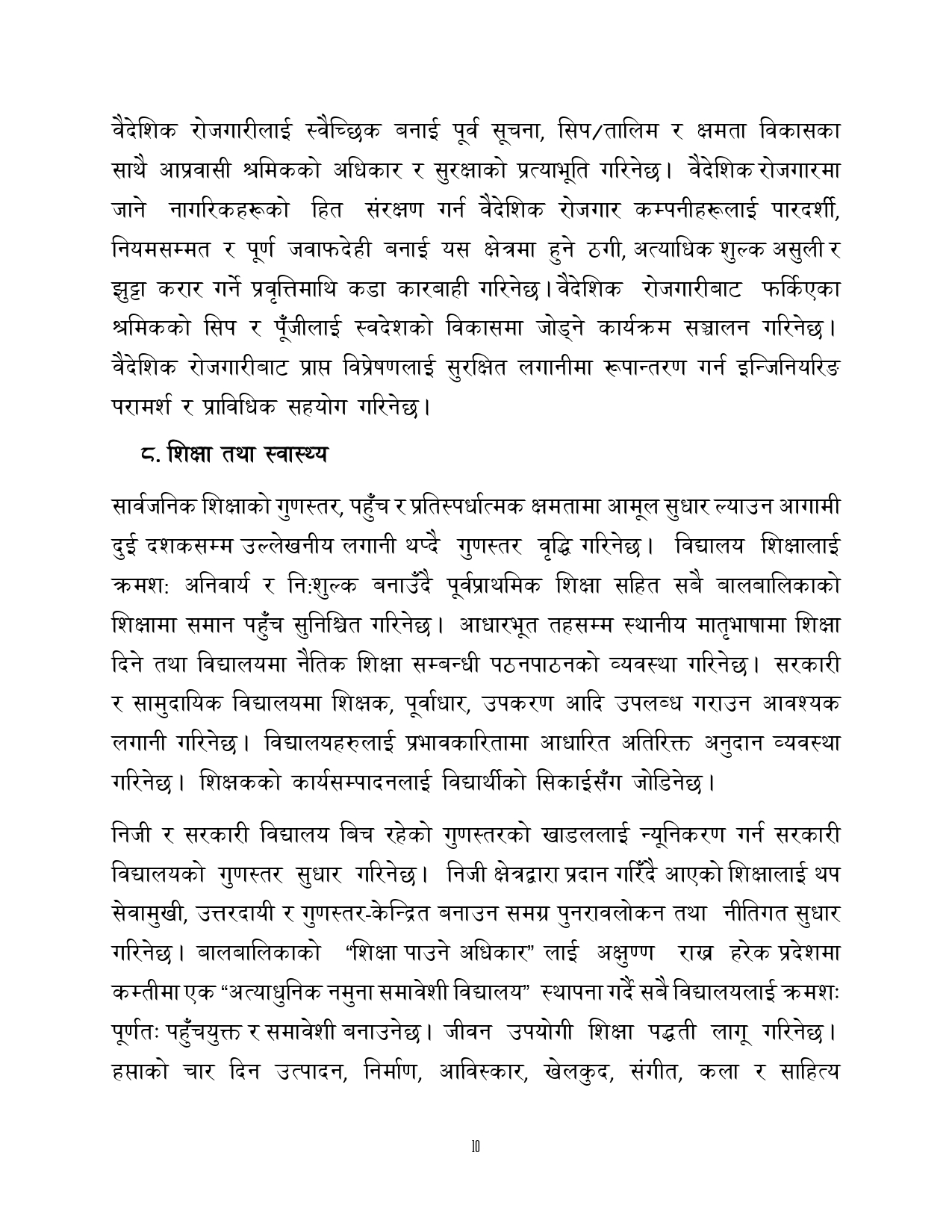 त्यसैगरी रोजगारी र समृद्धि, शिक्षा र स्वास्थ्य, वन वातावरण र जलवायु परिवर्तन, सुशासन र भ्रष्टाचार नियन्त्रण, प्रशासनिक सुधार र सेवा प्रवाह, विद्युतिय सुशासन र प्रविधिको क्षेत्रमा अवधारणापत्र माग भएको छ ।