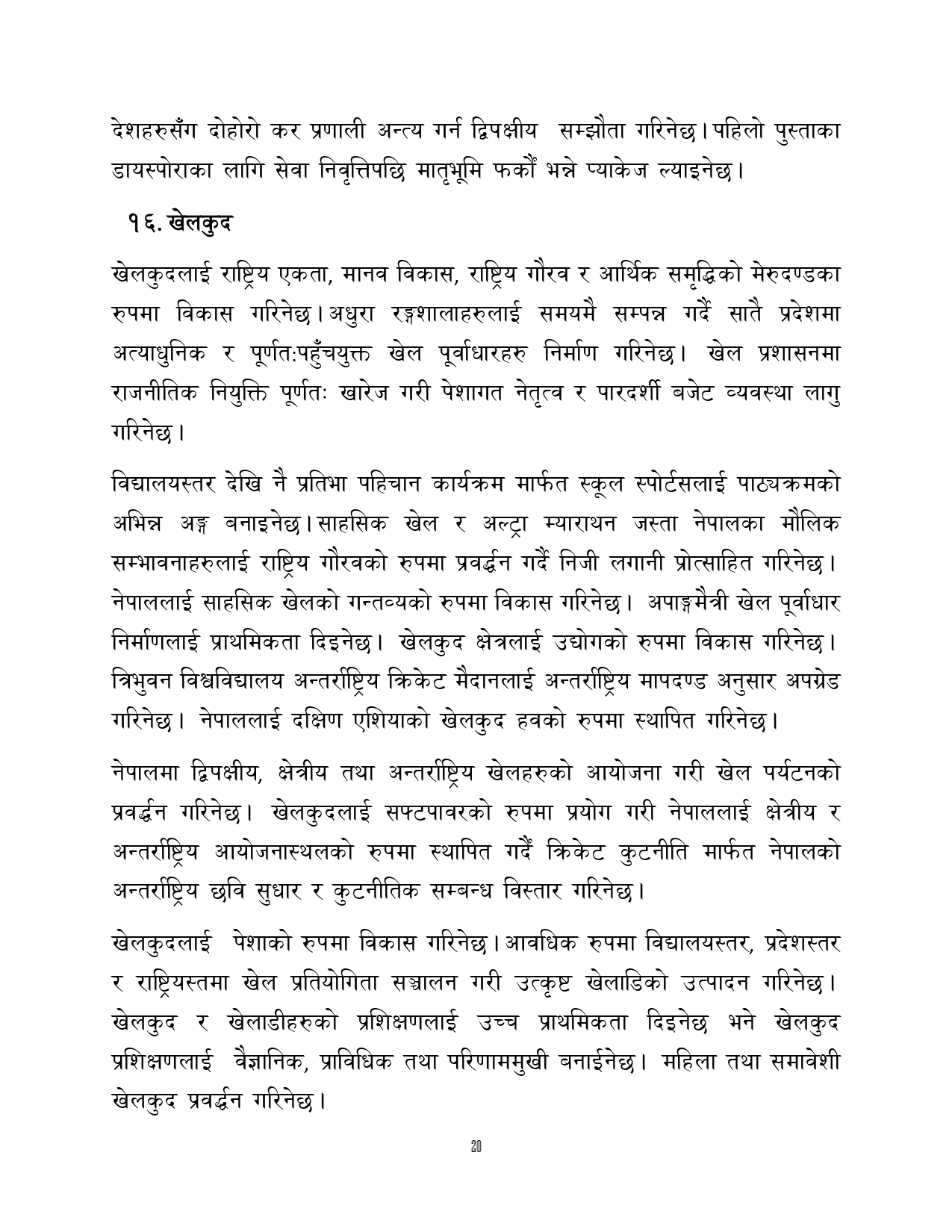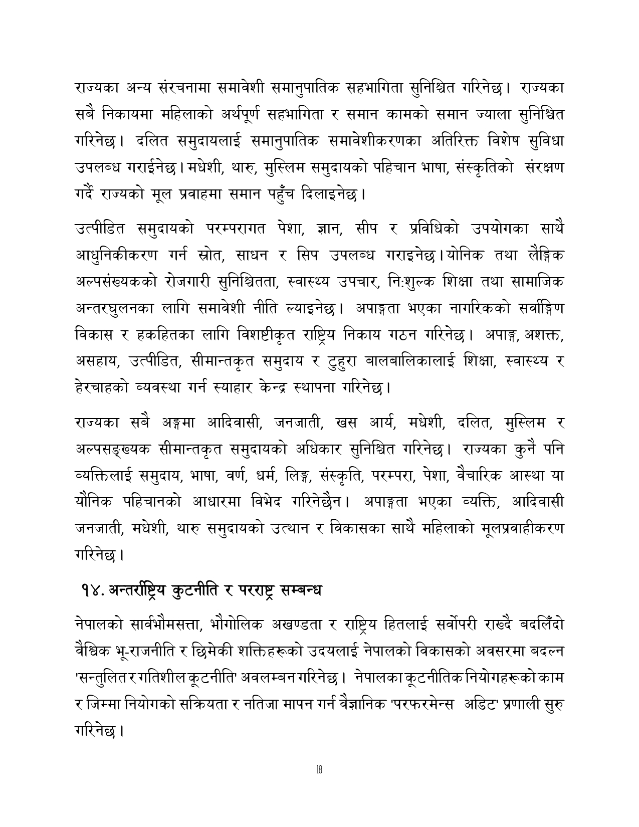 काठमाण्डौ । सरकारल १८ बुँदे ‘राष्ट्रिय प्रतिबद्धता दस्तावेज’ तयार गरेको छ । संसदमा प्रतिनिधित्व गर्ने ६ राष्ट्रिय राजनीतिक दलका घोषणापत्रहरूलाई समेटेर १८ बुँदे ‘राष्ट्रिय प्रतिबद्धता पत्र’ तयार गरेको हो ।