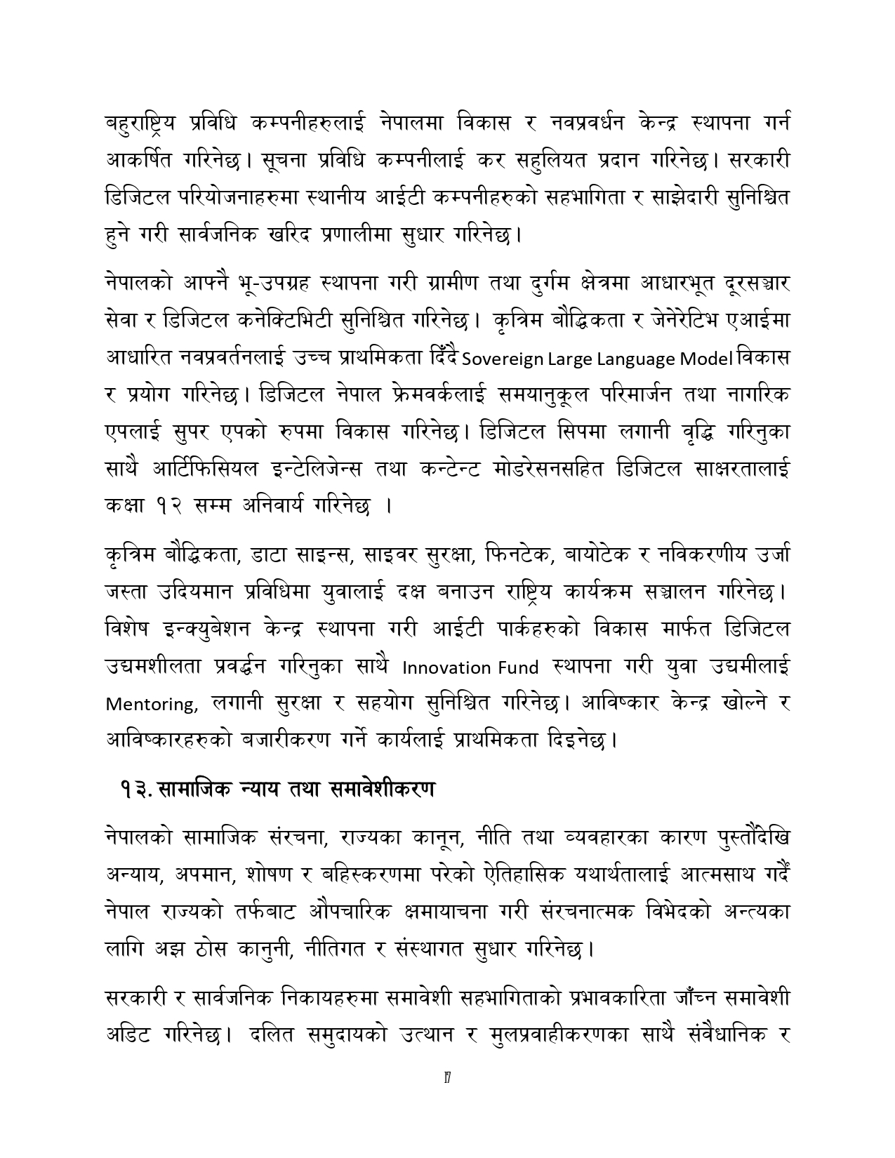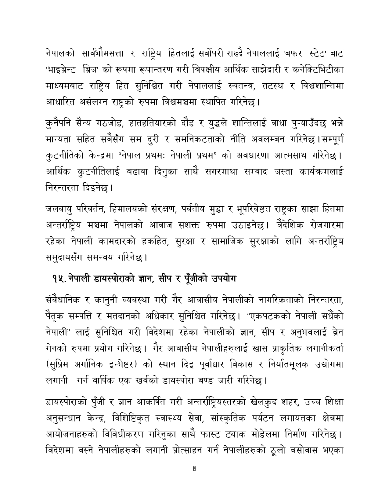 सरकारले सामाजिक न्याय तथा समावेशीता, अन्तर्राष्ट्रिय कूटनीति र वैदेशिक सम्बन्ध, नेपाली डायस्पोराको ज्ञान, सीप र पूँजीको सदुपयोग, साथै खेलकुद, विपद् व्यवस्थापन, सहकारी र लघुवित्त क्षेत्रलाई समेत अवधारणापत्रमा समेट्दै राजनीतिक दलहरूबाट सुझाव आह्वान गरेको छ।