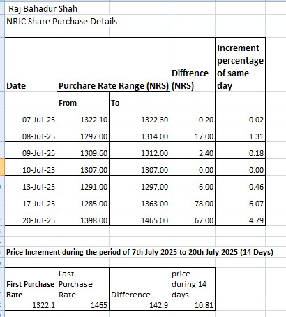 छानबिन समितिले प्रतिवेदनको ८.८ नम्बरमा बिनाआधार र पर्याप्त प्रमाणबिना नै राजबहादुर शाहलाई समेत मूल्य बढाउने कार्यमा संलग्न भएको भनेको छ । तर सेयर खरिद गर्नु नै मूल्य बढ्ने अन्तिम र एक मात्र कारण होइन भन्ने सामान्य विषयतर्फ अनुसन्धानकर्ताले नजरअन्दाज गरेको देखिन्छ । राजबहादुर शाहले सेयर खरीद गरेको अवधिमा एनआरआईसीको सेयरमूल्यमा असामान्य वृद्धि भएको पनि देखिन्न । बरु सो अवधिमा कुनै दिन सो कम्पनीको सेयरमूल्य उल्टै घटेको पनि पाइन्छ ।