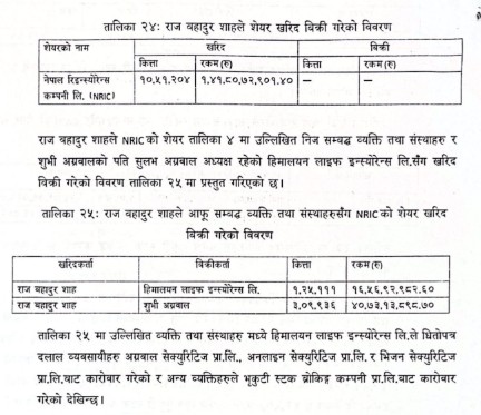 राजबहादुरको पुनर्बीमा कम्पनीको सेयर खरीदको डिटेल ।
