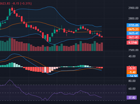 बोलिङ्गर ब्याण्डको आधारमा यो साता बजार तल्लो ब्याण्डमा चलेको देखिन्छ । अपर ब्याण्ड र लोअर ब्याण्डको दूरी केही बढ्दो देखिन्छ । म्याक्डीमा केही समय पहिले बनेको बियरिस क्रस ओभर भ्यालिड नै रहेको छ । हिस्टोग्राम लामा–लामा हुँदै गएका छन् । आरएसआई ३७ को तहमा पुगेको देखिन्छ । यस हिसाबले इन्डिकेटरबाट नियाल्दा यो साता बजारमा बिक्री दबाब परेको देखिन्छ । माथि उल्लेखित विभिन्न इन्डिकेटरबाट नियाल्दा यो साता बजारमा कुनै निश्चित बुलिस रिभर्सल प्याटर्न बनेको देखिदैन ।