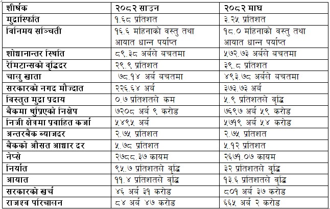 जेनजी आन्दोलनपछि बनेको अन्तरिम सरकारले अर्थतन्त्र सुधार भएको दाबी गर्दै आएको भए पनि साउनदेखि माघसम्मका प्रमुख आर्थिक तथा वित्तीय सूचकहरूको तुलनात्मक विश्लेषणले त्यो दाबीलाई पूर्ण रूपमा समर्थन गर्दैन। बरु उपलब्ध तथ्यांकले अर्थतन्त्रमा देखिएको सुधार सीमित, असन्तुलित र धेरै हदसम्म बाह्य कारकमा निर्भर रहेको संकेत गरेका छन्।